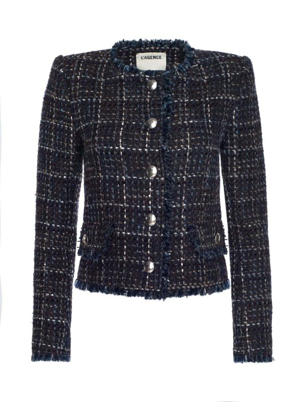 Meet the Zaya, a slightly cropped tweed jacket that evokes classic ladies-who-lunch elegance with downtown edge. The rich texture nods to tradition, while the frayed trims and industrial-look buttons add a cool, undone finish. Pair it with denim or leather for a look that’s equal parts refined and rebellious.